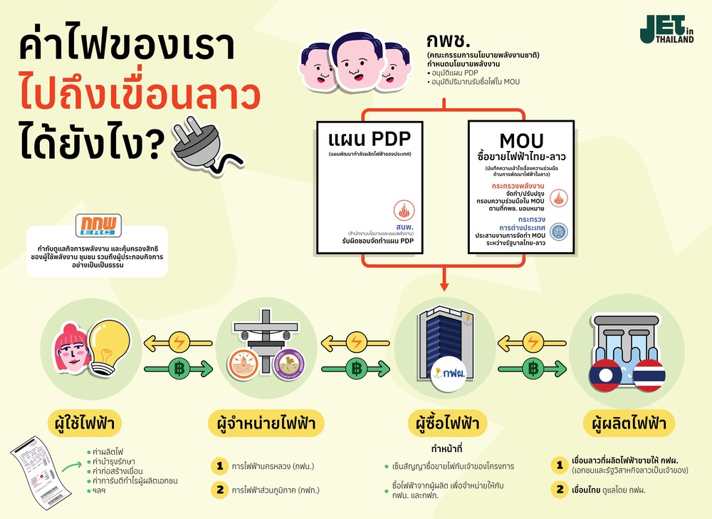 มาดูกันว่ากว่าที่เงินค่าไฟของเราจะเดินทางไปถึงมือเจ้าของเขื่อนในลาว เส้นทางนี้ถูกกำหนดจากอะไร และมีใครเกี่ยวข้องบ้าง?