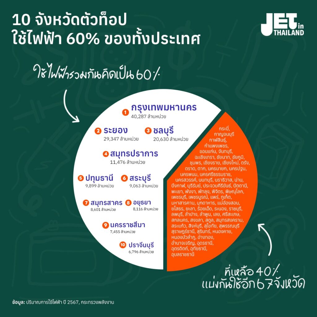 รู้หรือไม่ว่า 10 จังหวัดตัวท็อปที่ใช้ไฟเยอะสุด ใช้ไฟฟ้ากว่า 60% ของไฟฟ้าที่ใช้กันทั้งประเทศ!